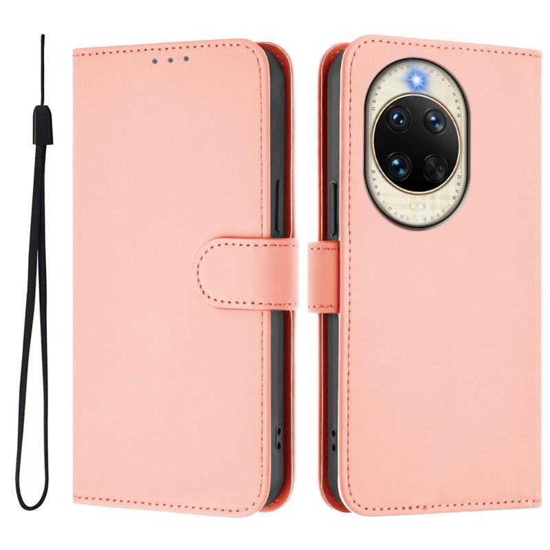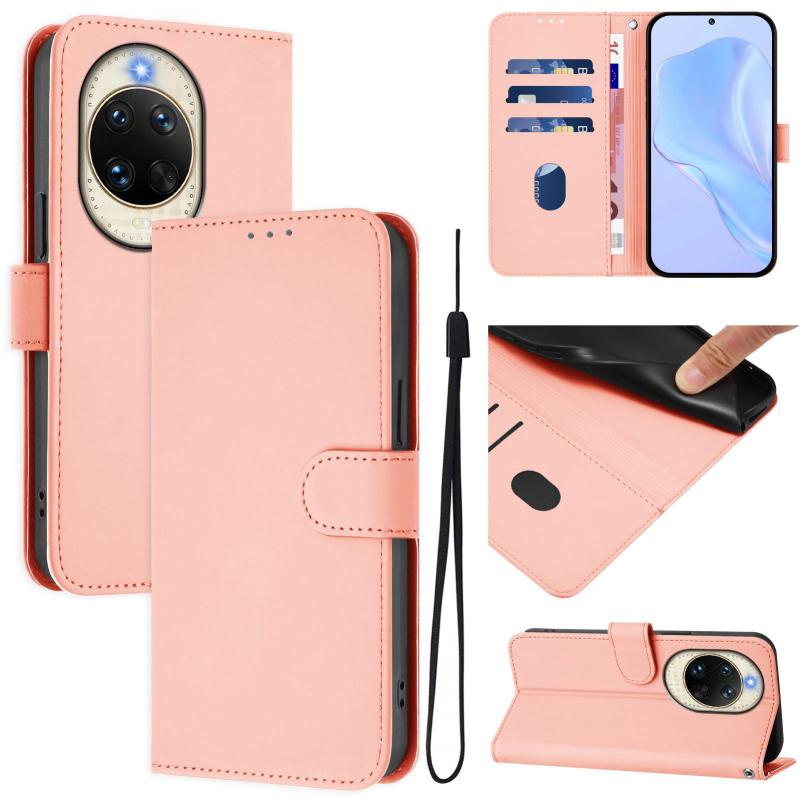 For Huawei nova 14 Skin Feel Solid Color Leather Phone Case with Lanyard(Pink)