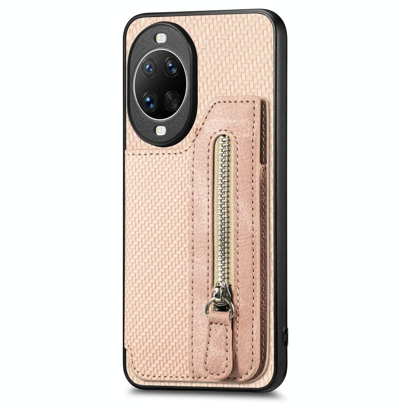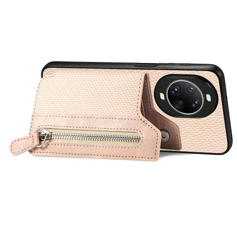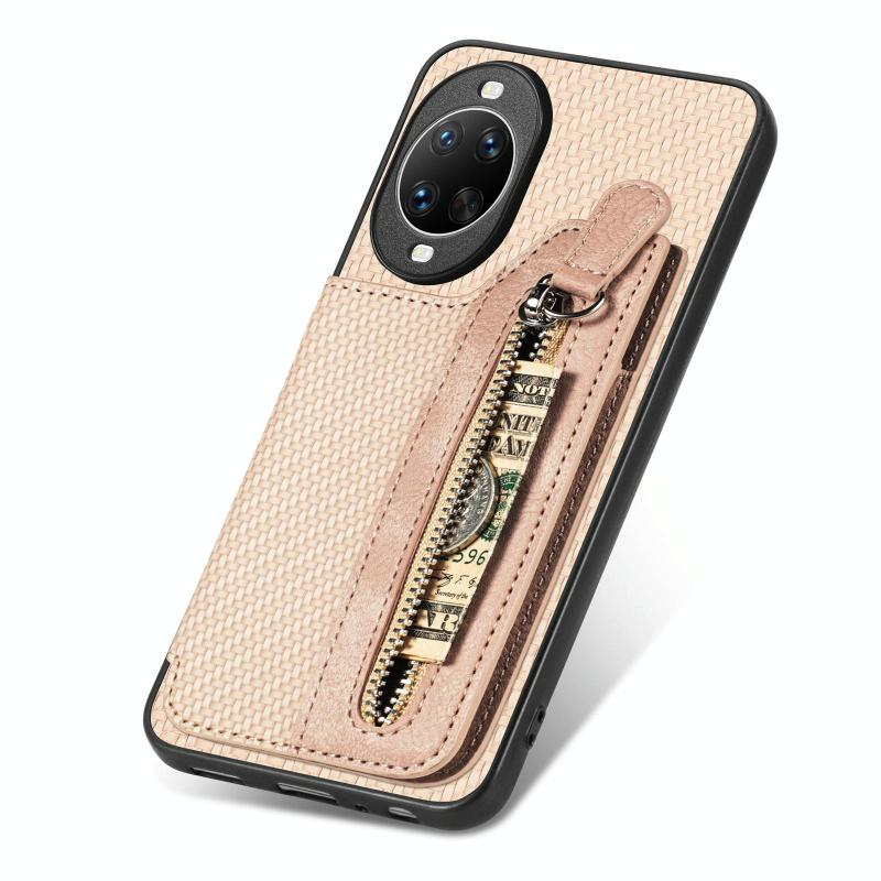 For Huawei nova 14 Ultra Carbon Fiber Horizontal Flip Zipper Wallet Phone Case(Khaki)
