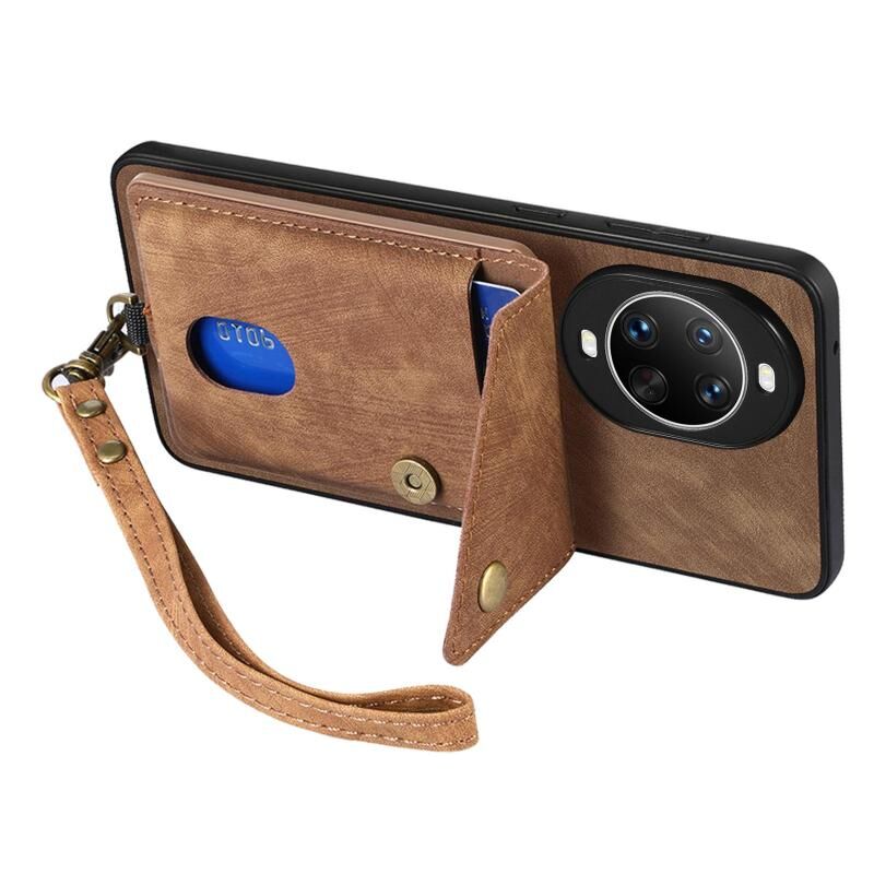 For Huawei nova 14 Ultra Retro Card Wallet Fold Leather Phone Case with Strap(Brown)