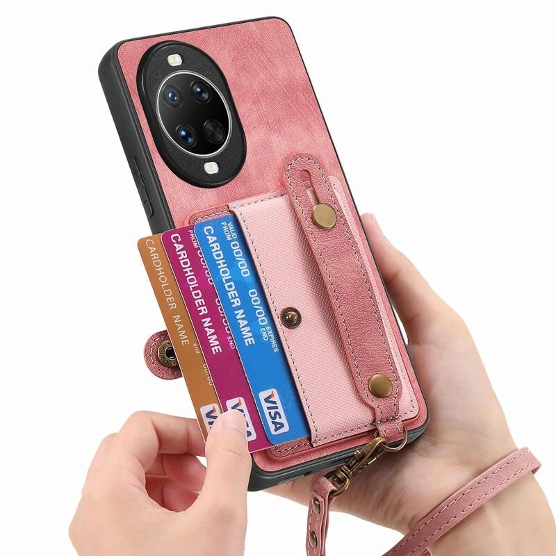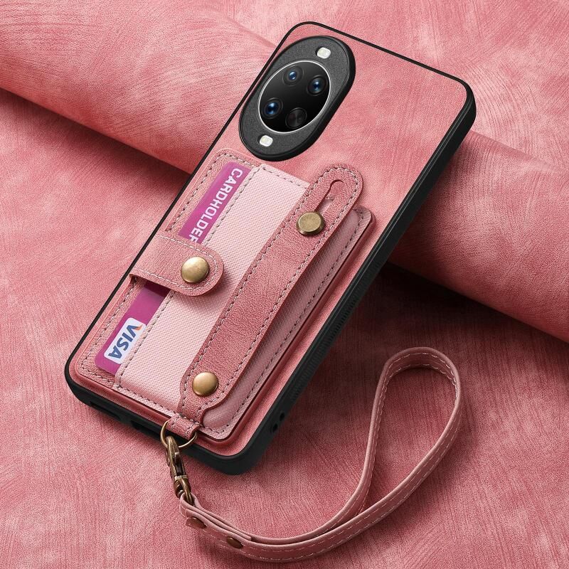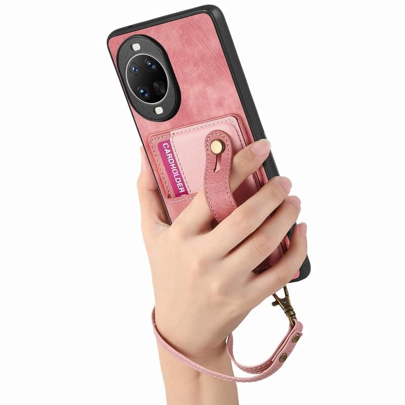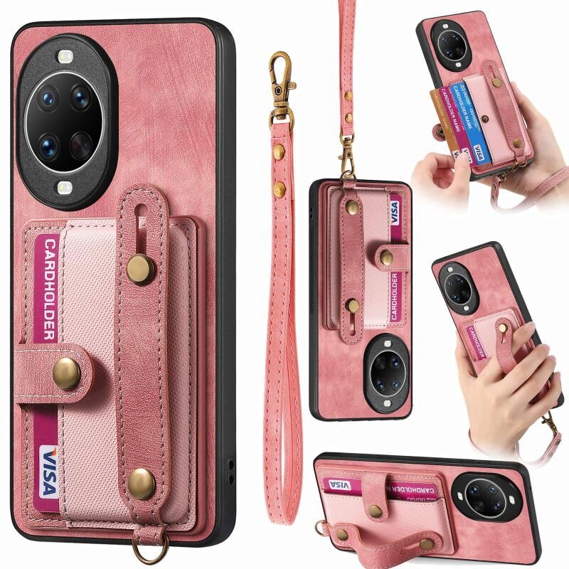 Θήκη κινητού τηλεφώνου Huawei nova 14 Ultra Retro Cross Wristband Wallet από δέρμα (ρόζ)