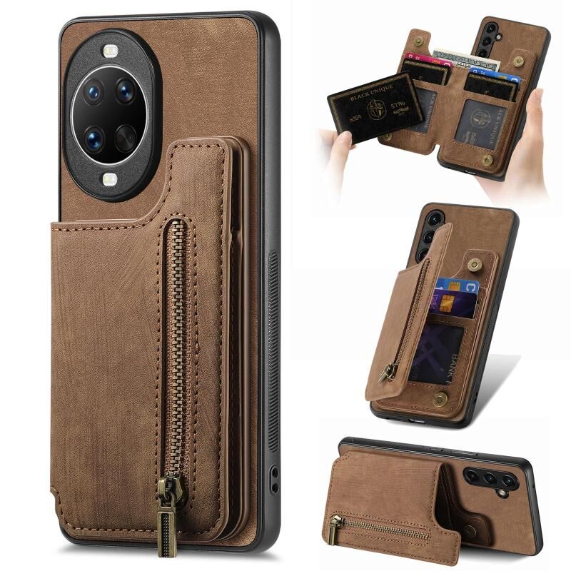 Θήκη κινητού τηλεφώνου Huawei nova 14 Ultra με δερμάτινο vintage πορτοφόλι με φερμουάρ (Μαύρο)
