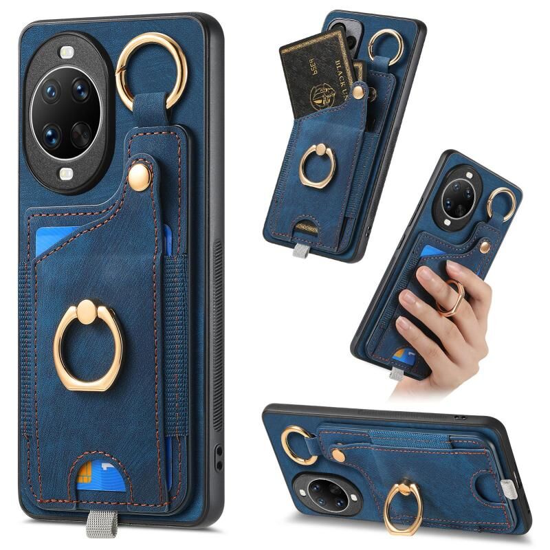 Θήκη κινητού τηλεφώνου Huawei nova 14 Ultra με ρετρό υφή, θήκη κάρτας με δακτύλιο και θηλιά για κρέμασμα (Καφέ)