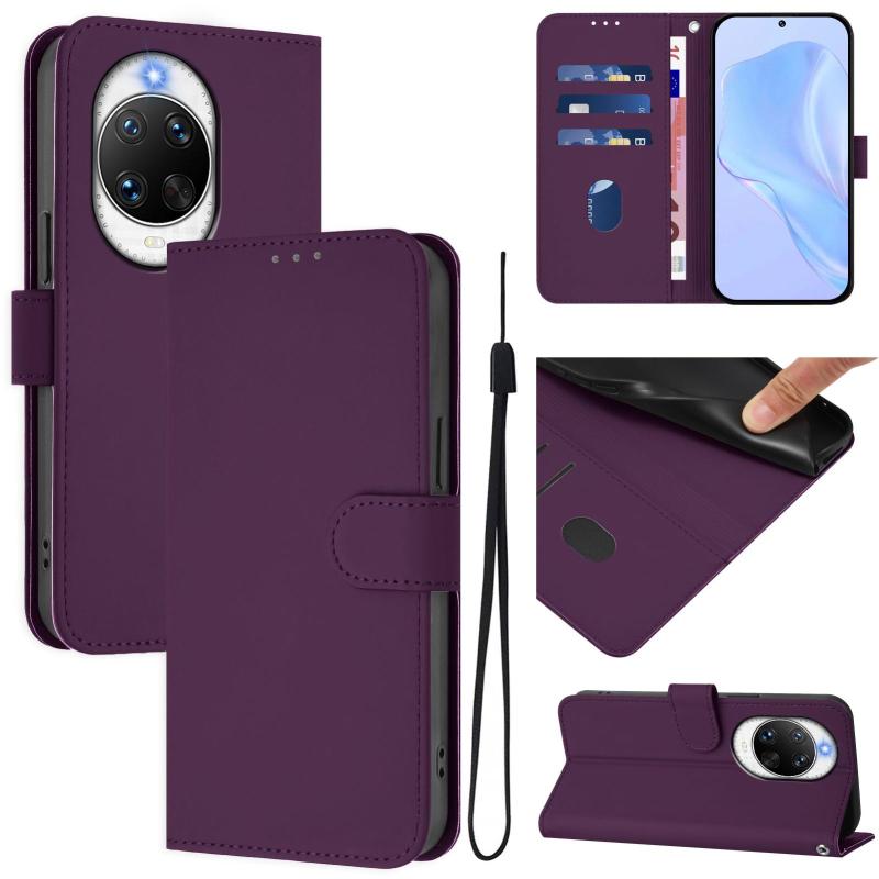 For Huawei nova 14 Ultra Skin Feel Solid Color Leather Phone Case with Lanyard(Violet)