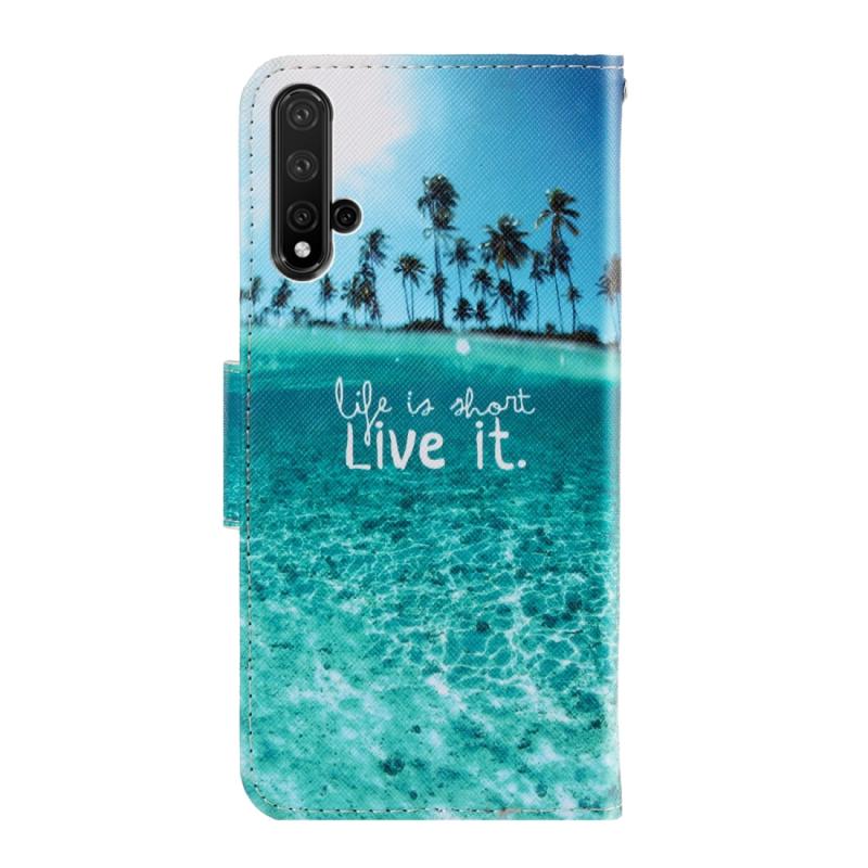 Θήκη δέρματος οριζόντιας αναδίπλωσης με σχέδιο για Huawei Nova 5, με βάση στήριξης, θήκη καρτών και πορτοφόλι (Κόκκινο)