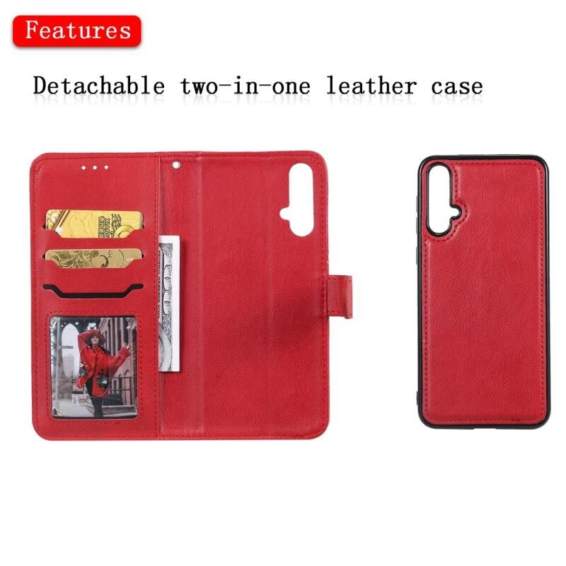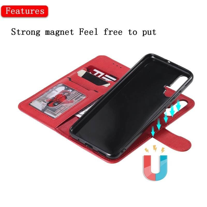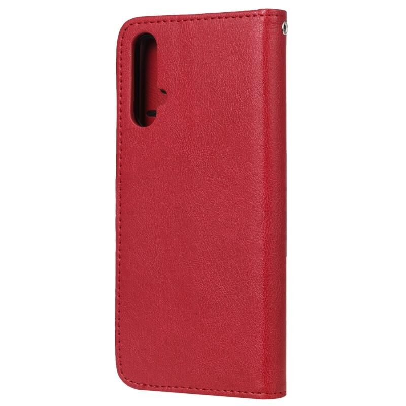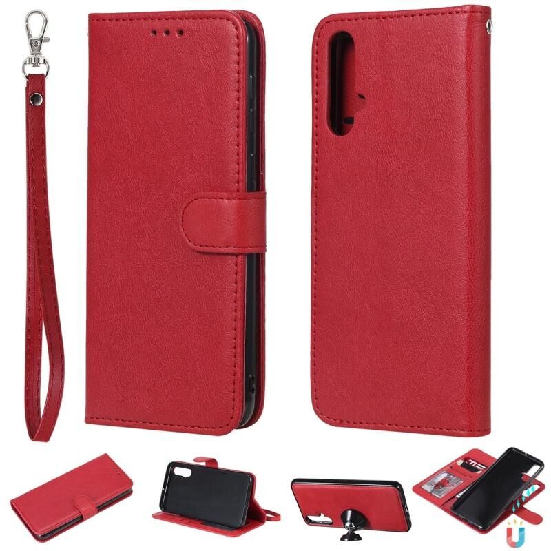 Για Huawei nova 5 Αμιγές χρώμα οριζόντια Flip προστατευτική θήκη με κάτοχο & υποδοχές καρτών & πορτοφόλι & πλαίσιο φωτογραφιών & κορδόνι (κόκκινο)