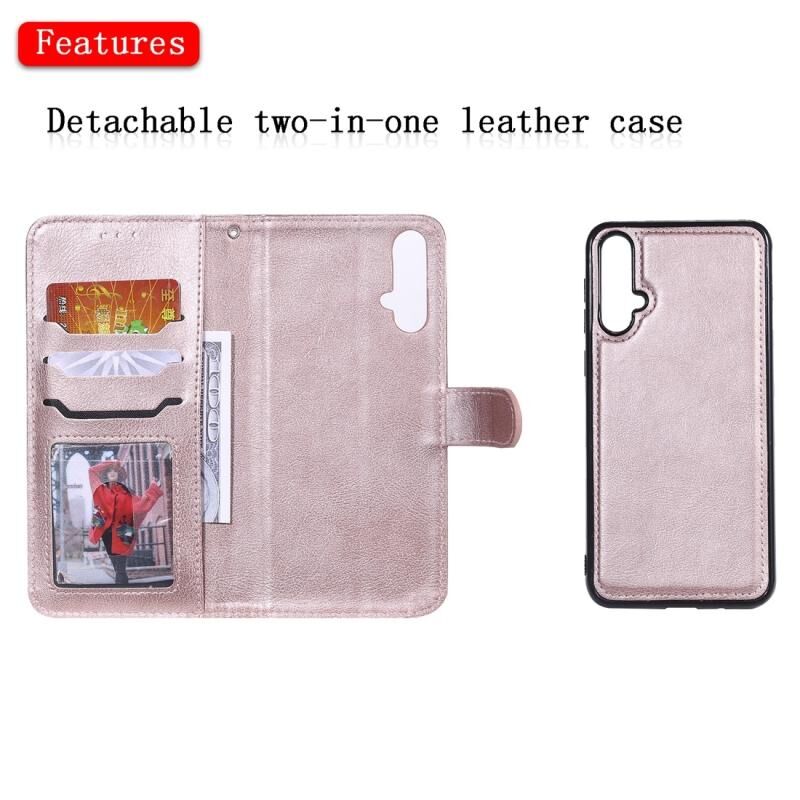 Για Huawei nova 5 Αμιγές χρώμα οριζόντια Flip προστατευτική θήκη με κάτοχο & υποδοχές καρτών & πορτοφόλι & πλαίσιο φωτογραφιών & κορδόνι (Rose Gold)