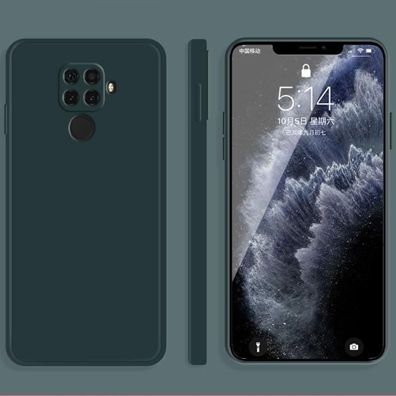 Για Huawei nova 5i Pro / 5z Solid Color Απομίμηση υγρού σιλικόνης Straight Edge Dropproof Full Coverage Προστατευτική θήκη (Σκούρο πράσινο)