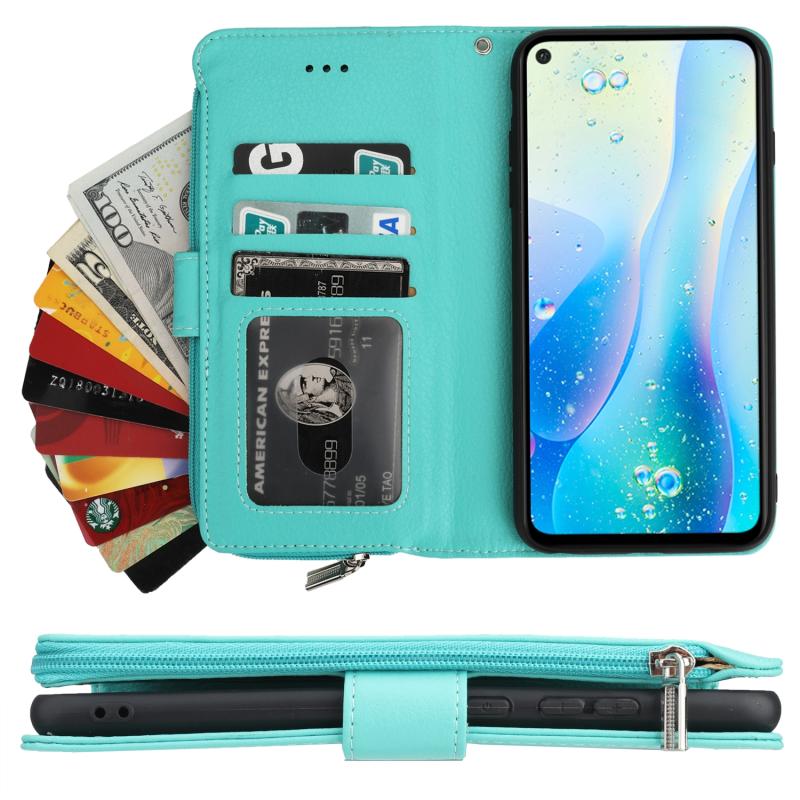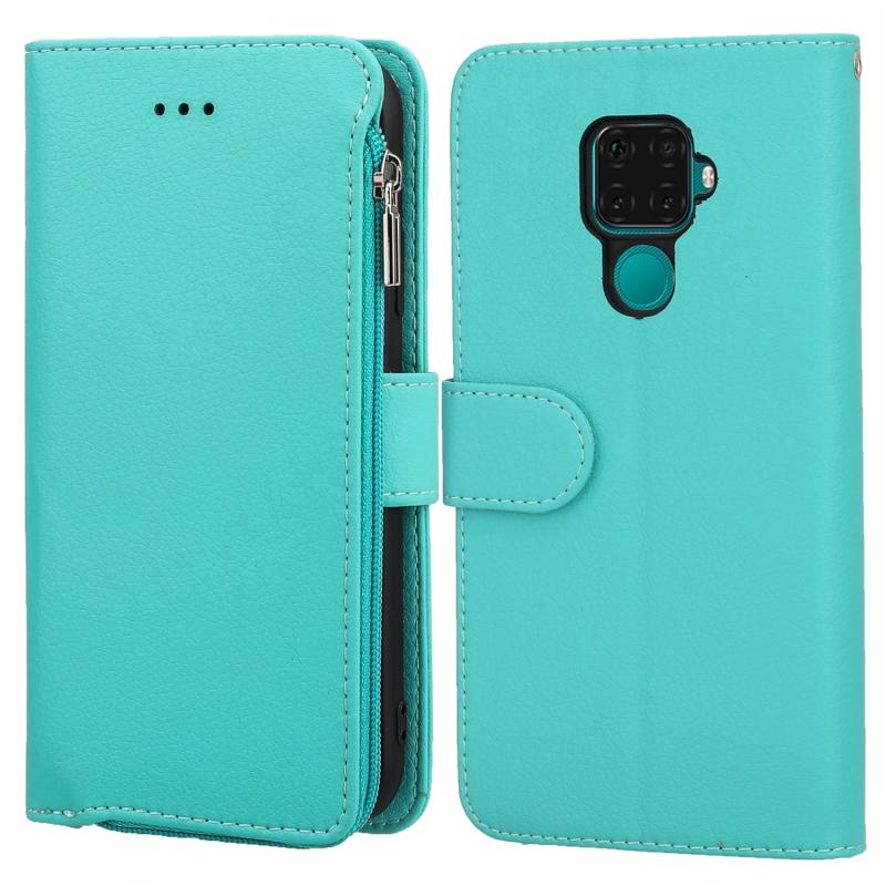 Θήκη δέρματος οριζόντιας αναδίπλωσης με φερμουάρ από μικροΐνες για Huawei Nova 5i Pro / Mate 30 Lite (Πράσινο)
