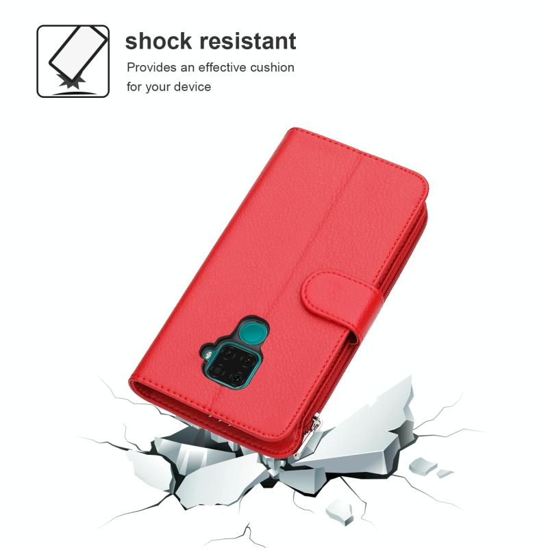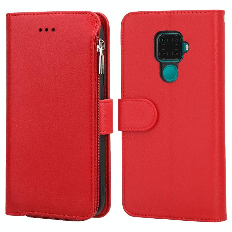Θήκη δέρματος οριζόντιας αναδίπλωσης με φερμουάρ από μικροΐνες για Huawei Nova 5i Pro / Mate 30 Lite (Πράσινο)