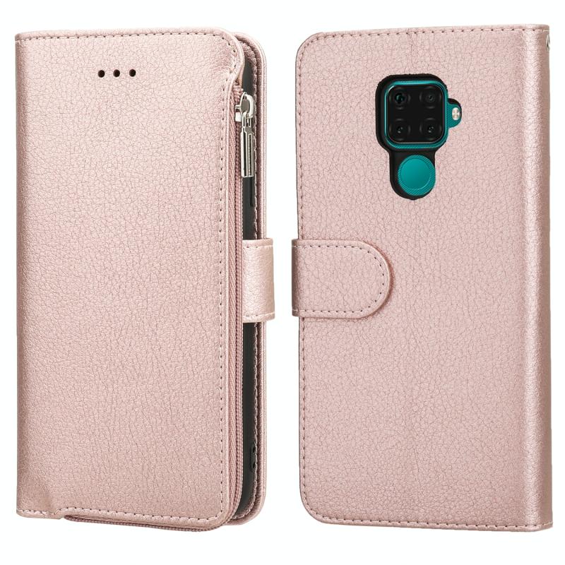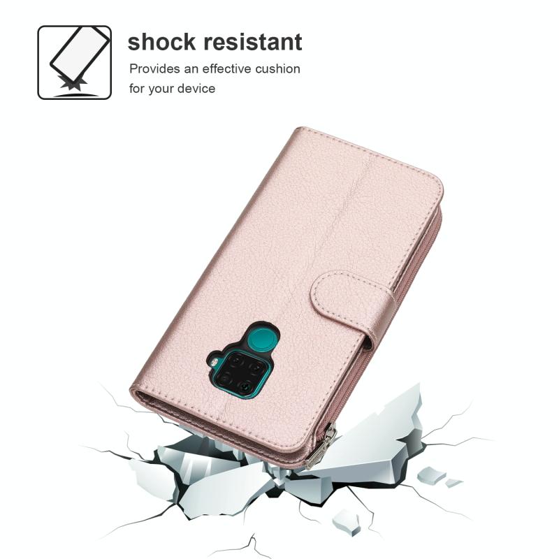 Θήκη δέρματος οριζόντιας αναδίπλωσης με φερμουάρ από μικροΐνες για Huawei Nova 5i Pro / Mate 30 Lite (Πράσινο)