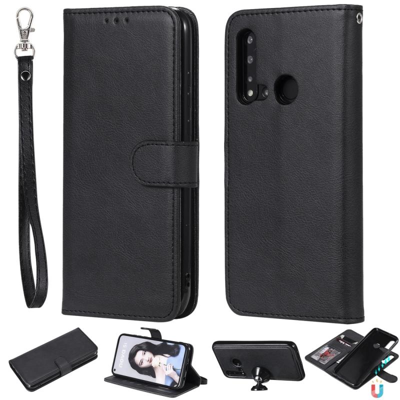 Θήκη προστασίας οριζόντιας αναδίπλωσης για Huawei nova 5i, μονόχρωμη, με βάση στήριξης, θήκες καρτών, πορτοφόλι, κορνίζα φωτογραφιών & λουρί (Μωβ)