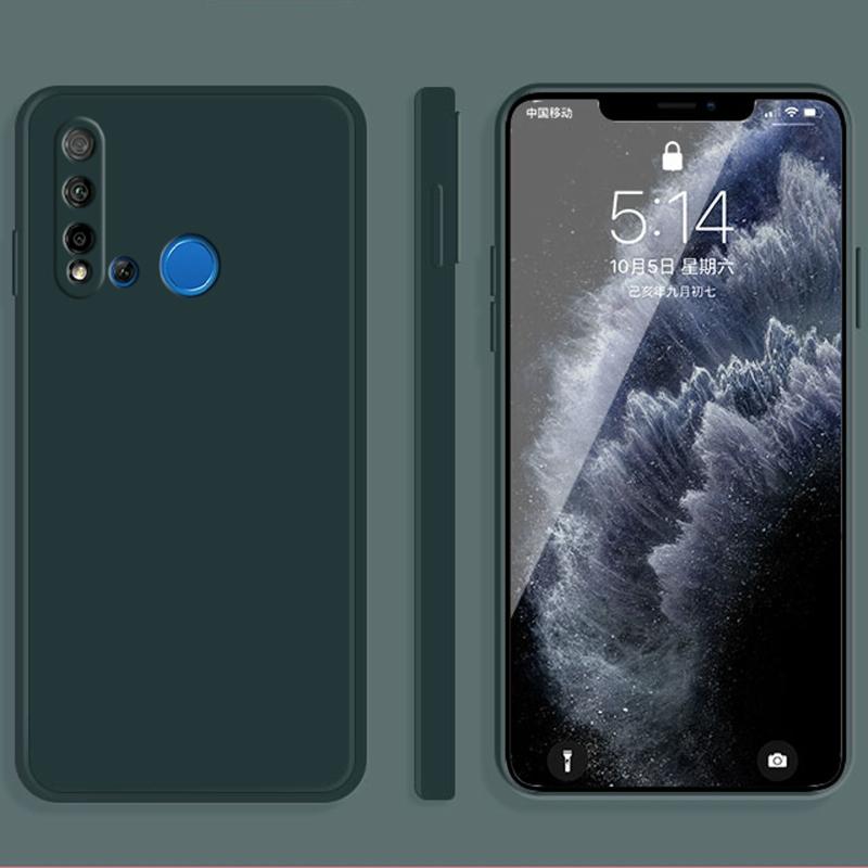 Θήκη προστασίας για Huawei nova 5i, μονόχρωμη, με υγρή σιλικόνη, ευθεία άκρη, ανθεκτική σε πτώσεις, πλήρης κάλυψη (Σκούρο πράσινο)