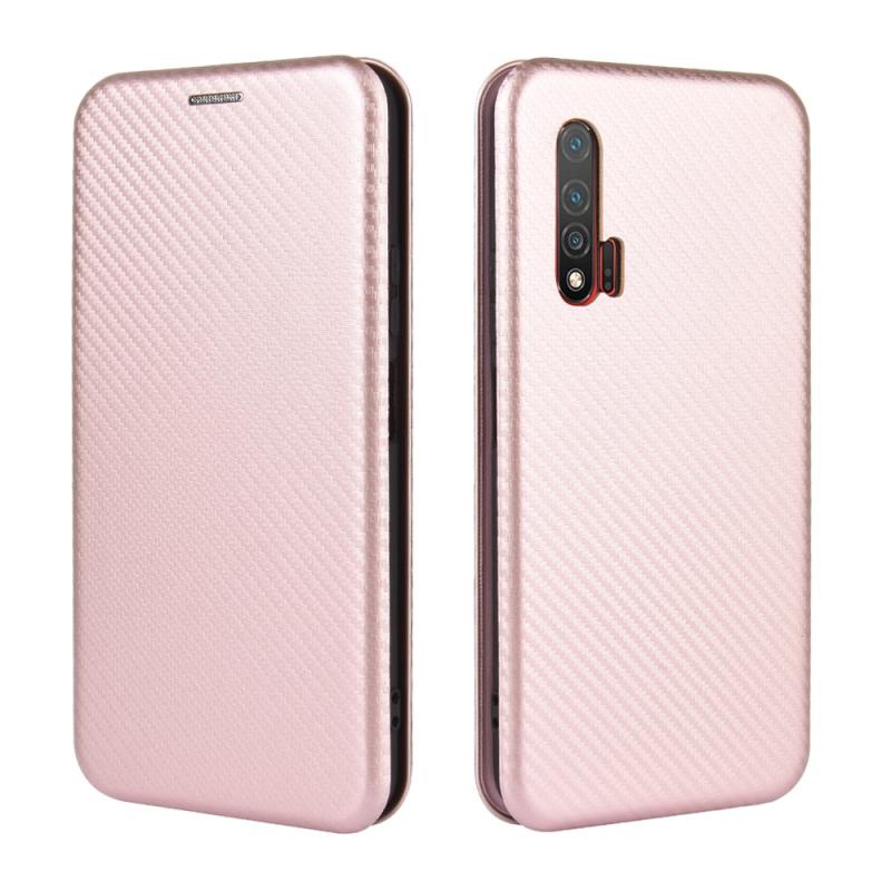 For Huawei nova 6 5G Carbon Fiber Texture Horizontal Flip TPU + PC + PU Leather Case with Card Slot(Pink)