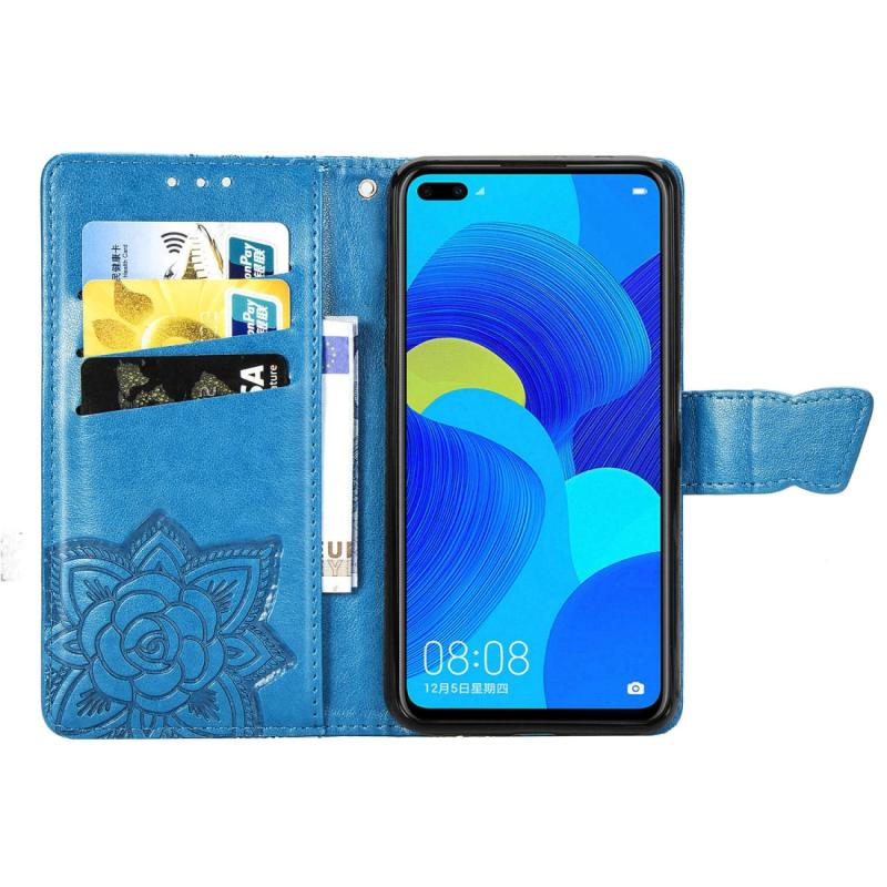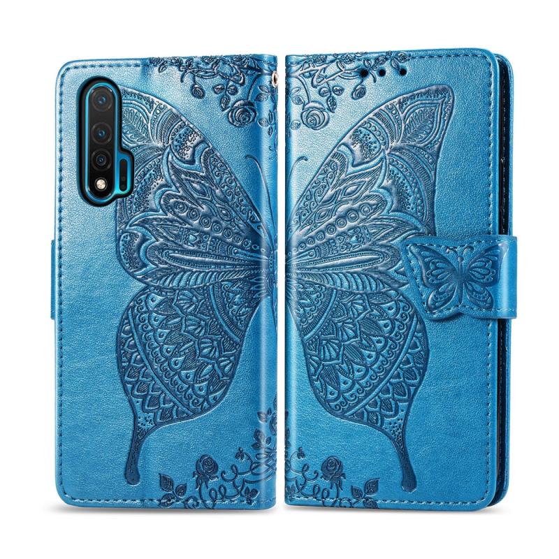 For Huawei Nova 6 Butterfly Love Flower Embossed Horizontal Flip Leather Case with Bracket / Card Slot / Wallet / Lanyard(Blue)