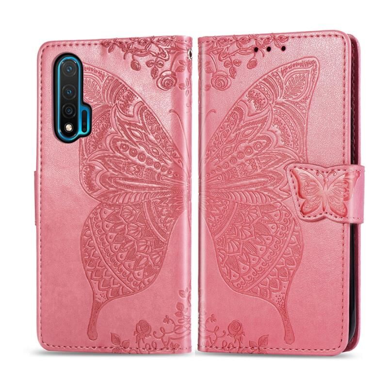 Θήκη Huawei Nova 6 Butterfly Love Flower Embossed Οριζόντια Δερμάτινη με Στήριγμα / Θήκη Καρτών / Πορτοφόλι / Λουρί (Μαύρο)