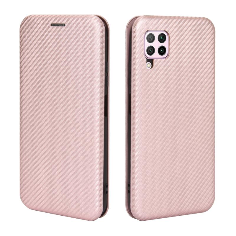 For Huawei nova 6 SE / nova 7i Carbon Fiber Texture Horizontal Flip TPU + PC + PU Leather Case with Card Slot(Pink)