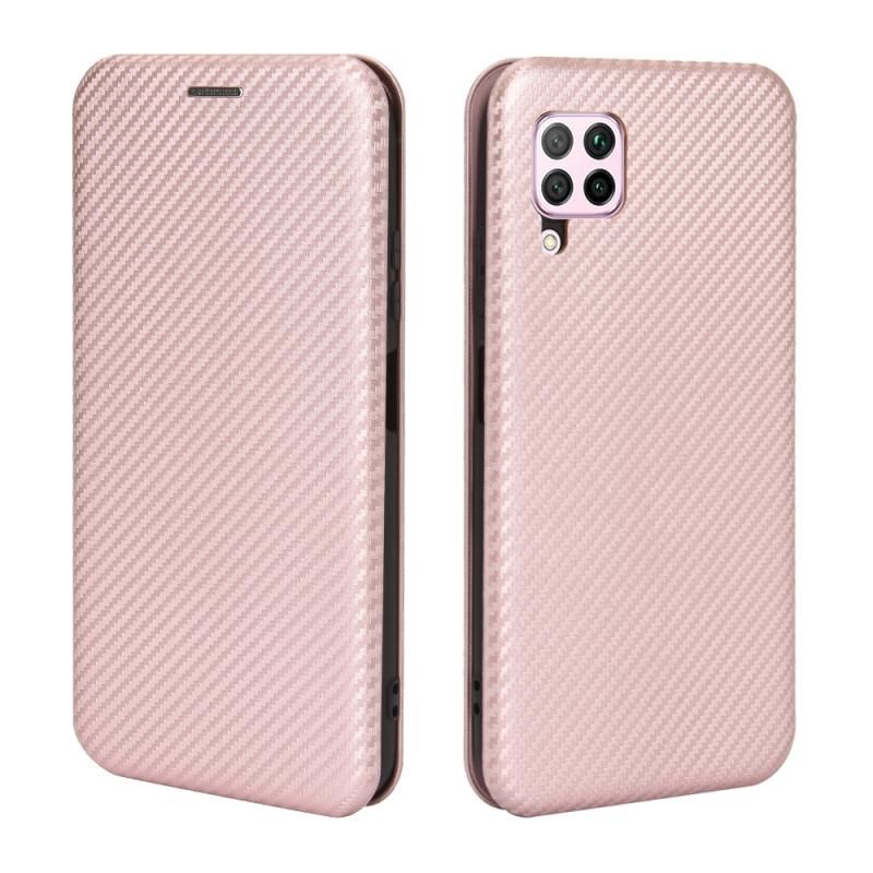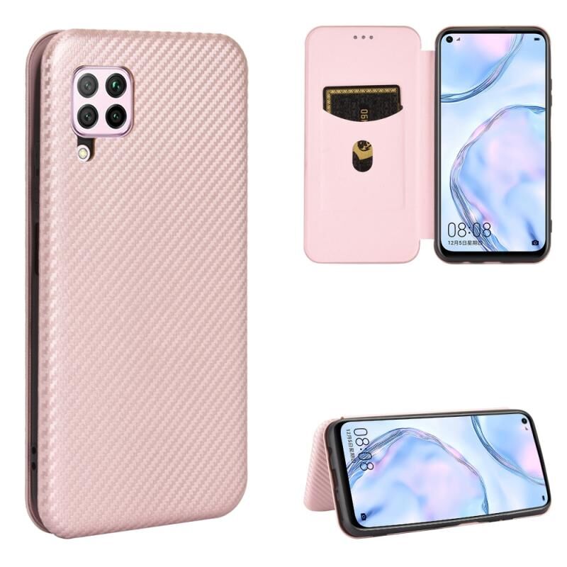 Για Huawei nova 6 SE / nova 7i Θήκη οριζόντιας αναδίπλωσης από TPU + PC + Δερματίνη PU με υφή ανθρακονήματος και θήκη για κάρτες (Ροζ)