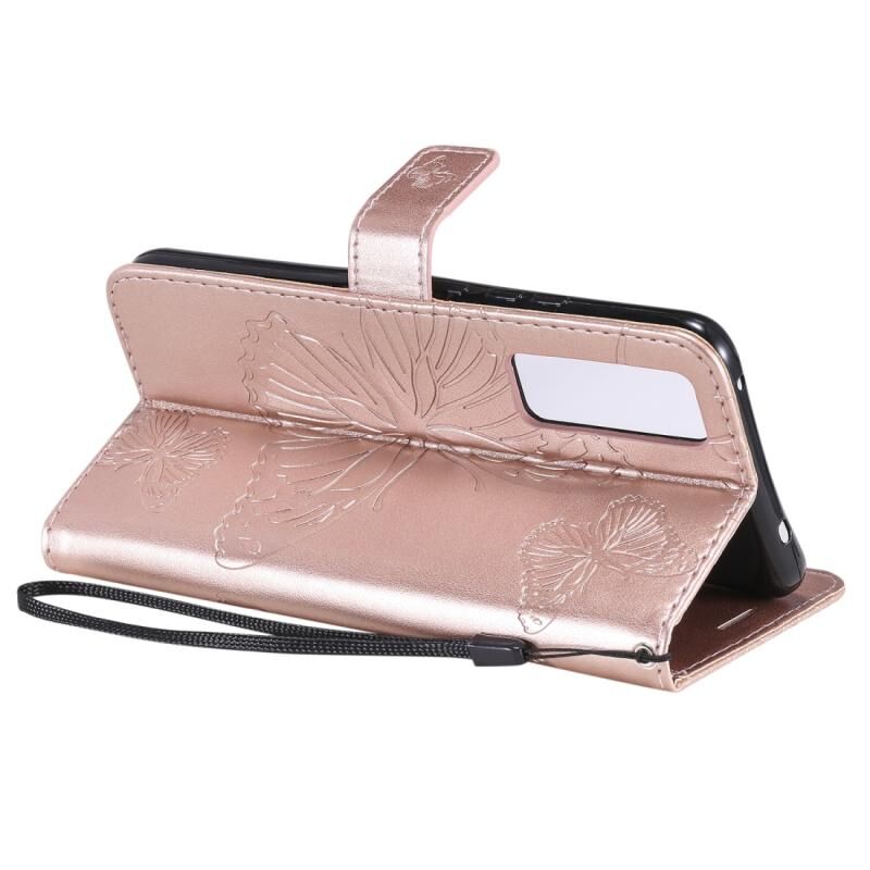 Θήκη Huawei Nova 7 3D Πεταλούδες, Embossing, Οριζόντια, Δερμάτινη με Στήριξη & Θήκη Καρτών & Πορτοφόλι (Μωβ)