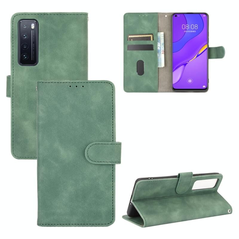 Για Huawei nova 7 5G Solid Color Skin Feel Μαγνητική πόρπη οριζόντια Flip μοσχάρι υφή PU δέρμα υπόθεση με κάτοχο & υποδοχές καρτών & πορτοφόλι (πράσινο)