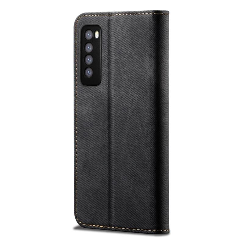 Για Huawei Nova 7 Denim Texture Casual Style Οριζόντια Flip δερμάτινη θήκη με θήκη & υποδοχές για κάρτες & πορτοφόλι (Μαύρο)