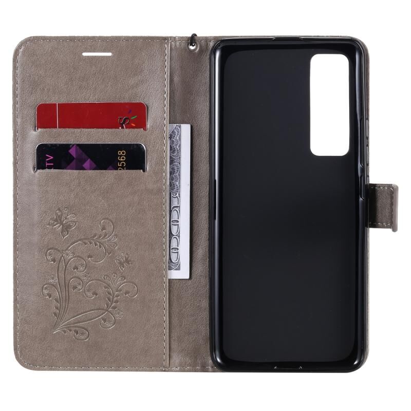 Θήκη Huawei Nova 7 Pro 3D Πεταλούδες Embossing, Οριζόντια Δερμάτινη με Στήριξη & Θήκη Καρτών & Πορτοφόλι (Πράσινο)
