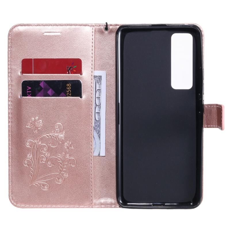 Θήκη Huawei Nova 7 Pro 3D Πεταλούδες Embossing, Οριζόντια Δερμάτινη με Στήριξη & Θήκη Καρτών & Πορτοφόλι (Πράσινο)