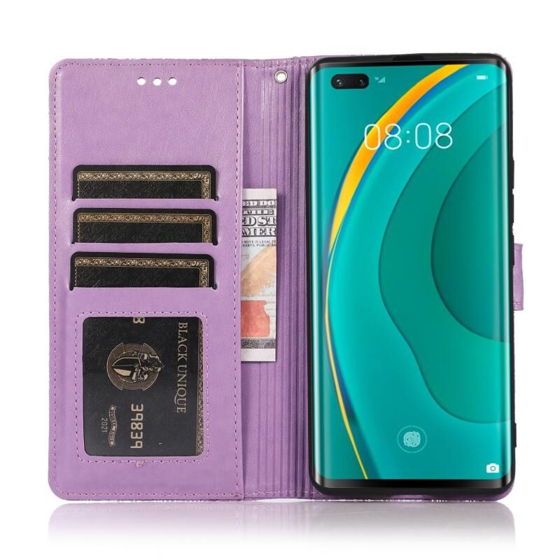 Για Huawei nova 7 Pro 5G Skin Feel ανάγλυφο ηλιοτρόπιο οριζόντια Flip δερμάτινη θήκη με κάτοχο & υποδοχές καρτών & πορτοφόλι & κορδόνι (μωβ)