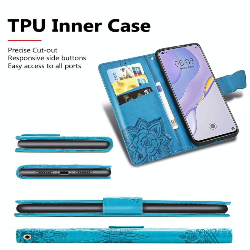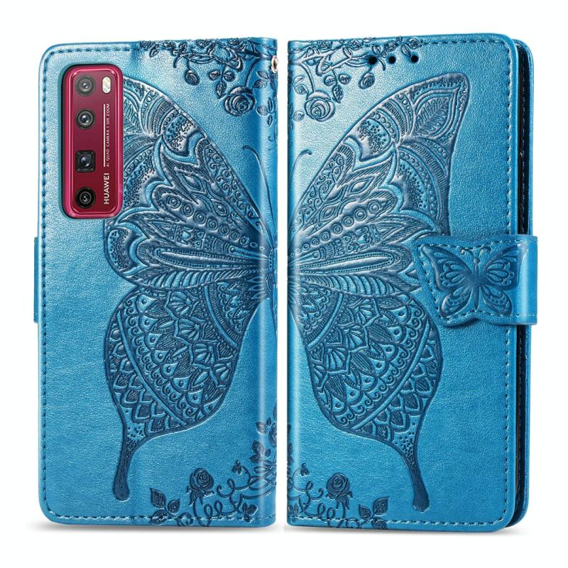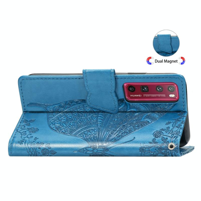 For Huawei Nova 7 Pro Butterfly Love Flower Embossed Horizontal Flip Leather Case with Bracket / Card Slot / Wallet / Lanyard(Blue)