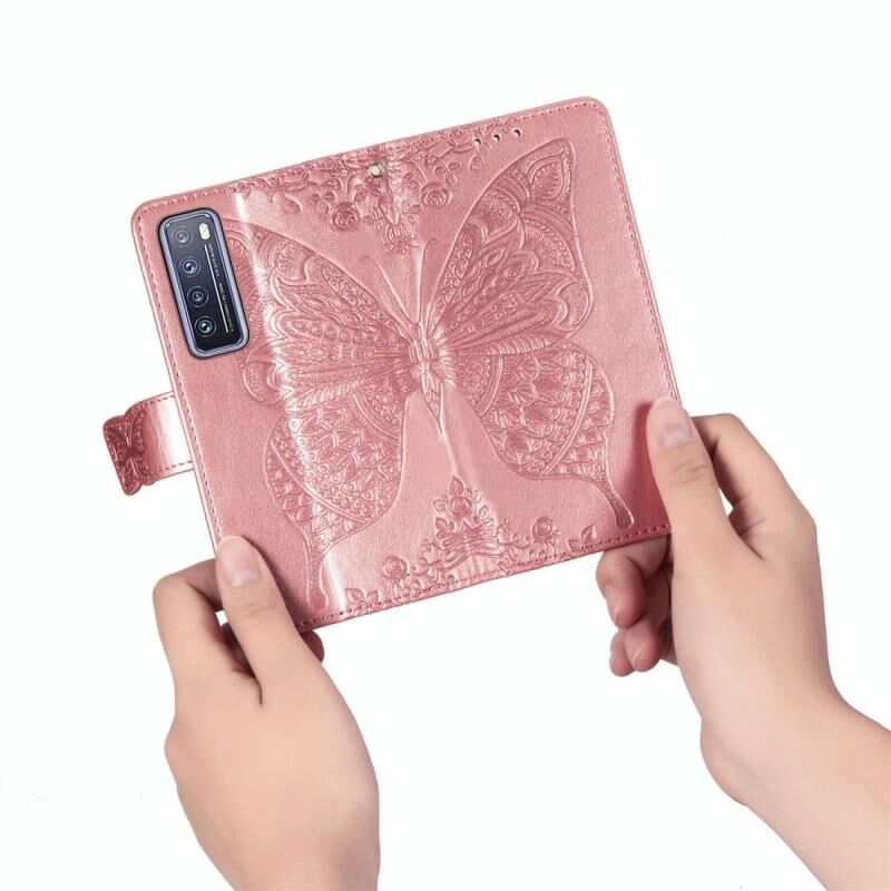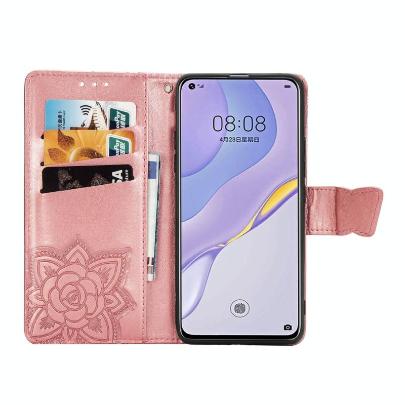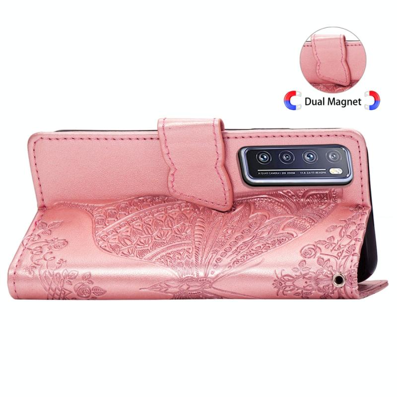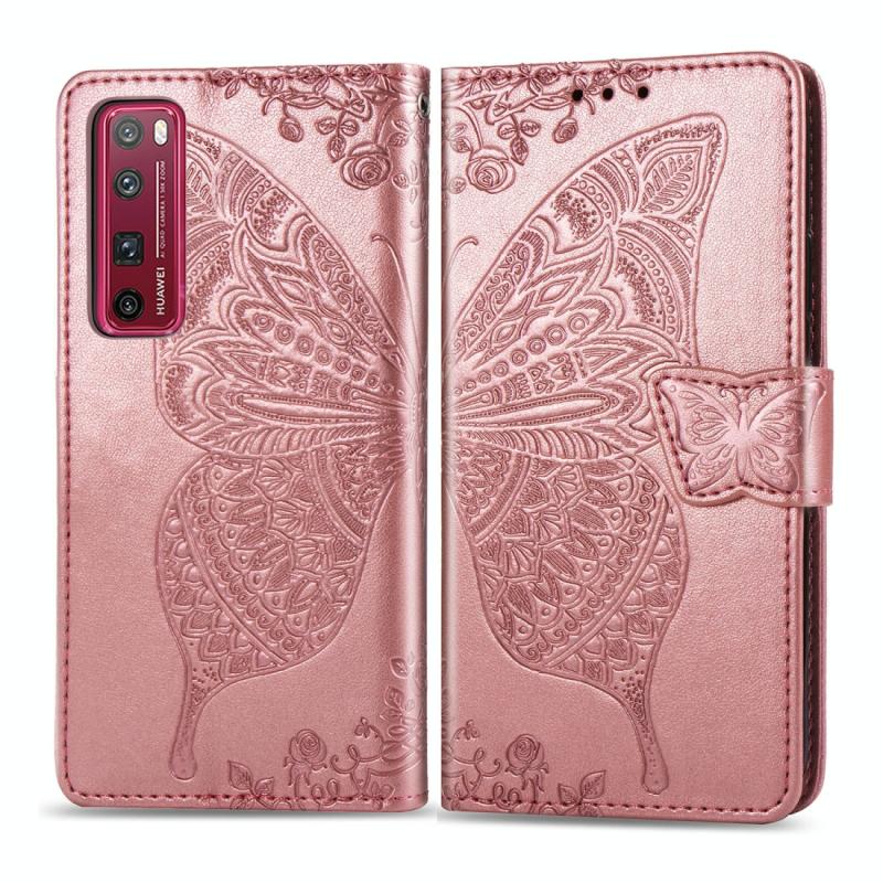 For Huawei Nova 7 Pro Butterfly Love Flower Embossed Horizontal Flip Leather Case with Bracket / Card Slot / Wallet / Lanyard(Rose Gold)