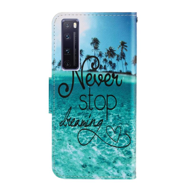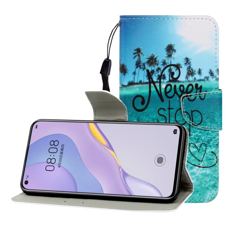Θήκη δέρματος οριζόντιας αναδίπλωσης με σχέδιο και χρώματα για Huawei Nova 7 Pro με βάση στήριξης & υποδοχή κάρτας & πορτοφόλι (Μπλε Κόκκινος Κόλπος (Ble Kokkinos Kolpos) **Note:** While a direct translation would be "Μπλε Γκρόβος Καρύδας" (Ble Grovos K