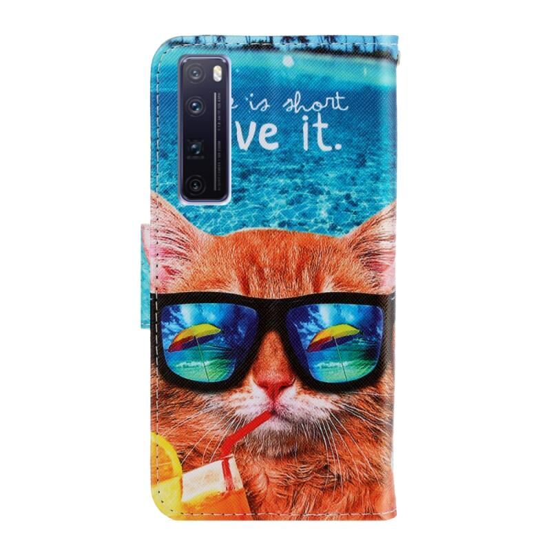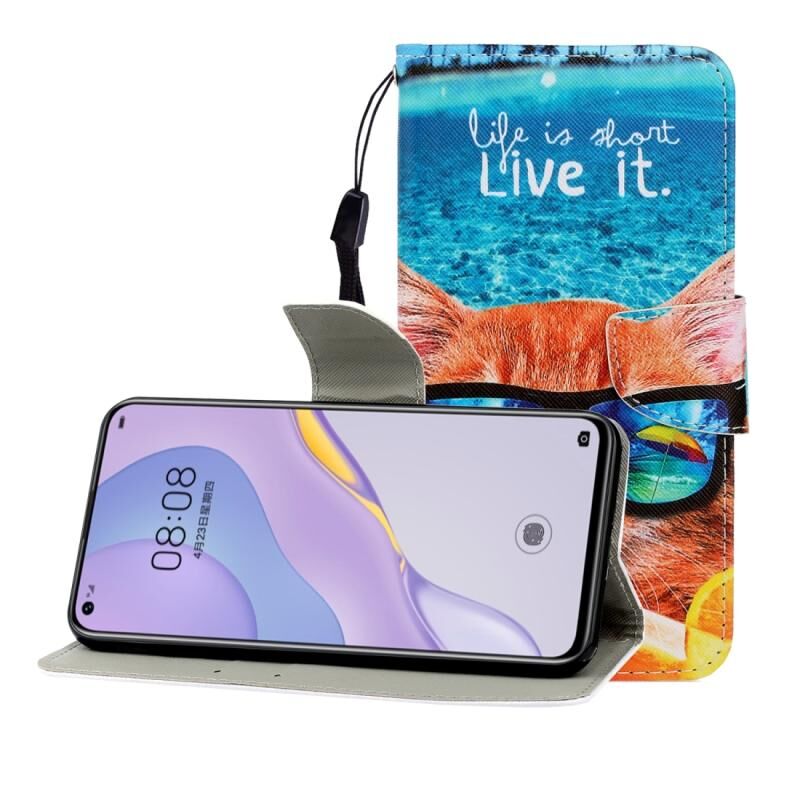 Θήκη δέρματος οριζόντιας αναδίπλωσης με σχέδιο και χρώματα για Huawei Nova 7 Pro με βάση στήριξης & υποδοχή κάρτας & πορτοφόλι (Κόκκινο)