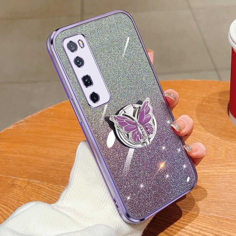 Θήκη κινητού τηλεφώνου Huawei nova 7 Pro με επιμετάλλωση, διαβαθμισμένη λάμψη, σχέδιο πεταλούδας, από TPU (Ροζ)