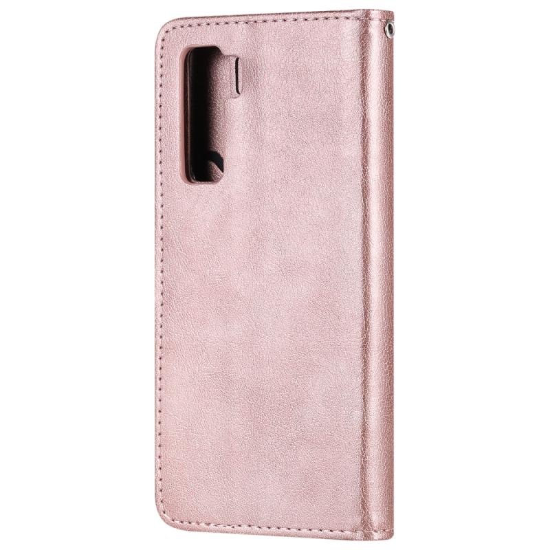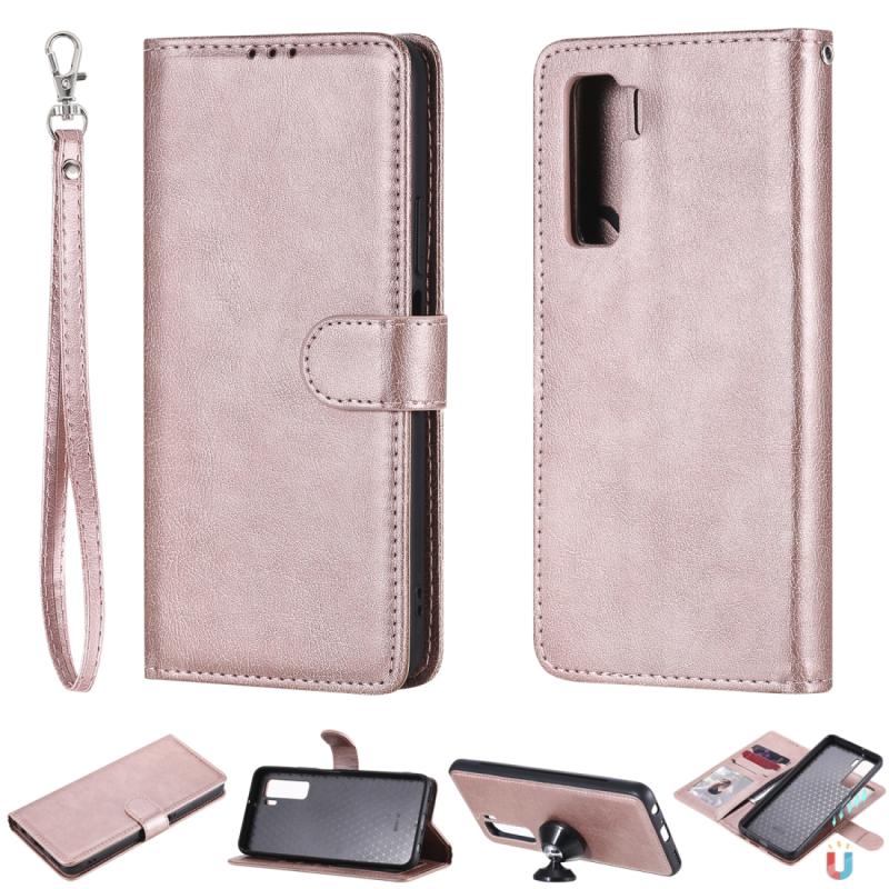 For Huawei Nova 7 SE 2 in 1 Solid Color Detachable PU Leather Case with Card Slots & Magnetic Holder & Photo Frame & Wallet & Strap(Rose Gold)