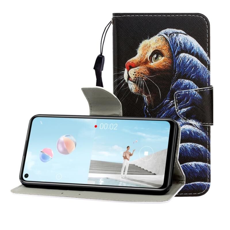 Θήκη δέρματος οριζόντιας αναδίπλωσης με σχέδιο για Huawei Nova 7 SE με βάση στήριξης & υποδοχή κάρτας & πορτοφόλι (Γάτα με πουπουλένιο μπουφάν)