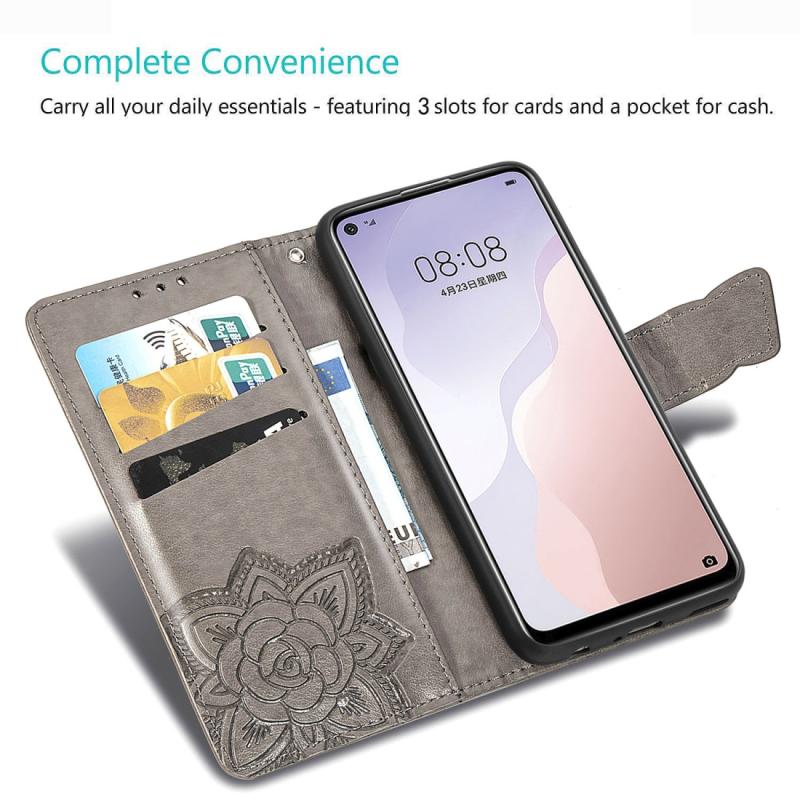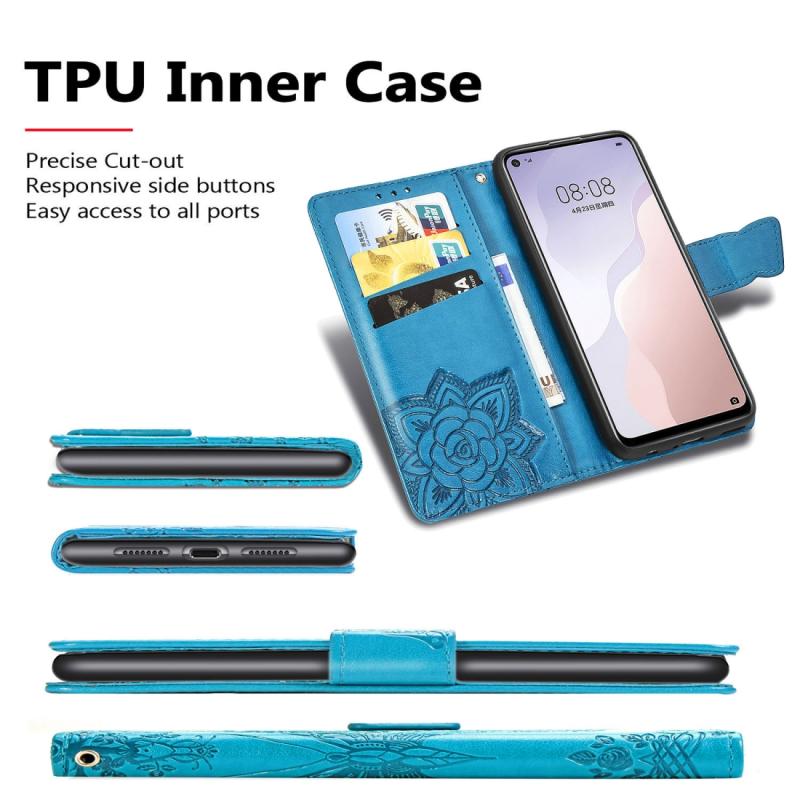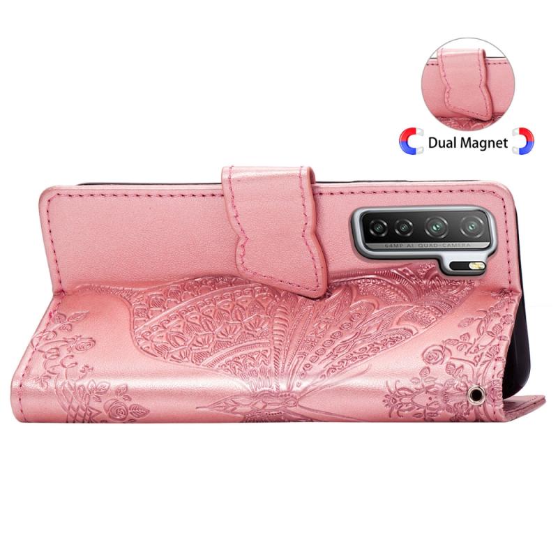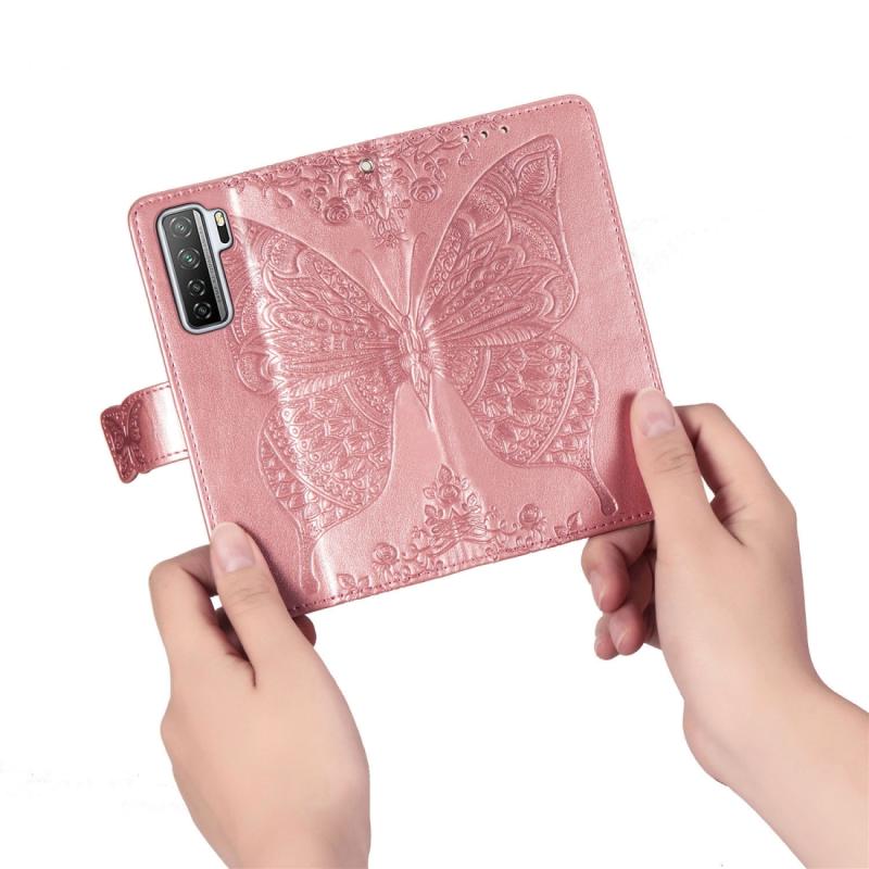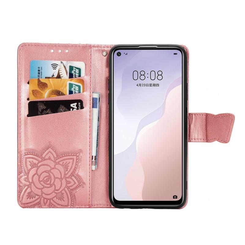 Για Huawei Nova 7 SE/P40 Lite 5G Θήκη Δέρματος Οριζόντιας Αναδίπλωσης με ανάγλυφο σχέδιο Πεταλούδας και Λουλουδιών, με Στήριγμα / Θήκη Κάρτας / Πορτοφόλι / Λουρί (Ροζ)