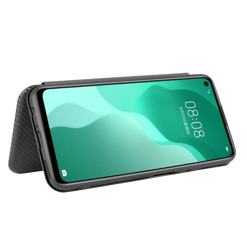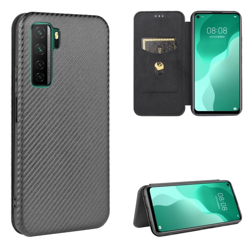 For Huawei nova 7 SE / P40 Lite 5G Carbon Fiber Texture Horizontal Flip TPU + PC + PU Leather Case with Card Slot(Black)