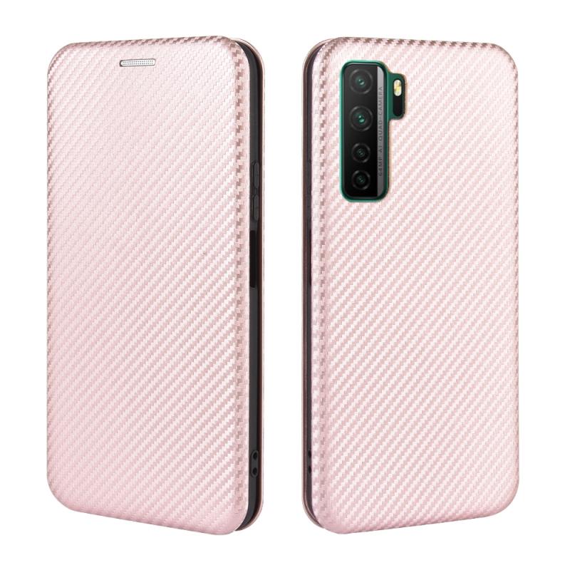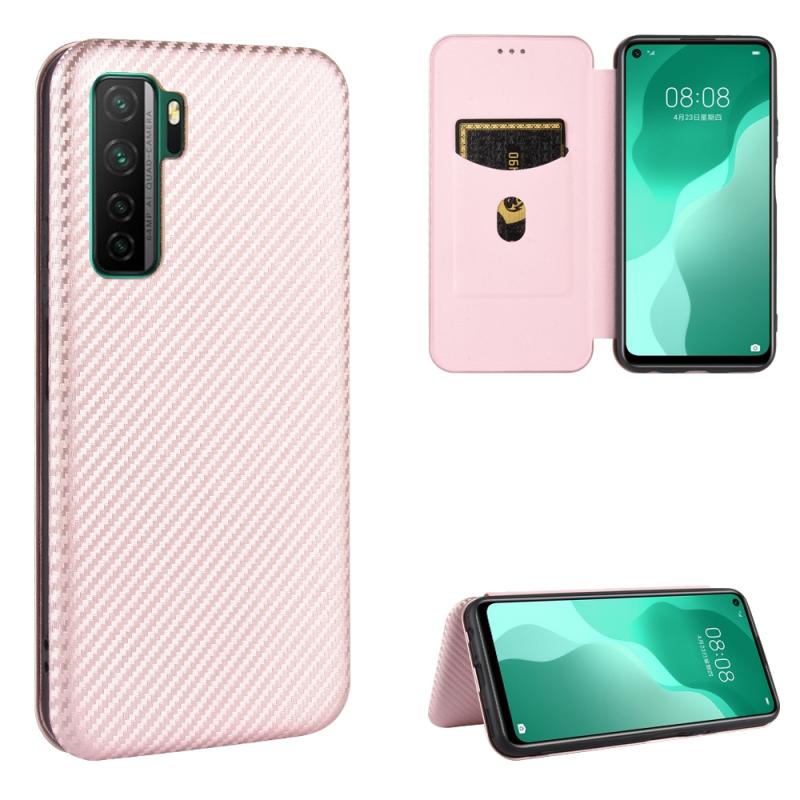 For Huawei nova 7 SE / P40 Lite 5G Carbon Fiber Texture Horizontal Flip TPU + PC + PU Leather Case with Card Slot(Pink)