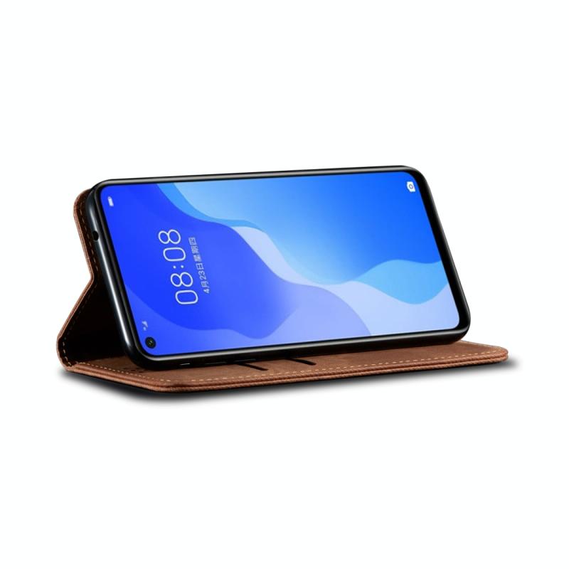 For Huawei Nova 7 SE / P40 Lite 5G Denim Texture Casual Style Horizontal Flip Leather Case with Holder & Card Slots & Wallet(Brown)