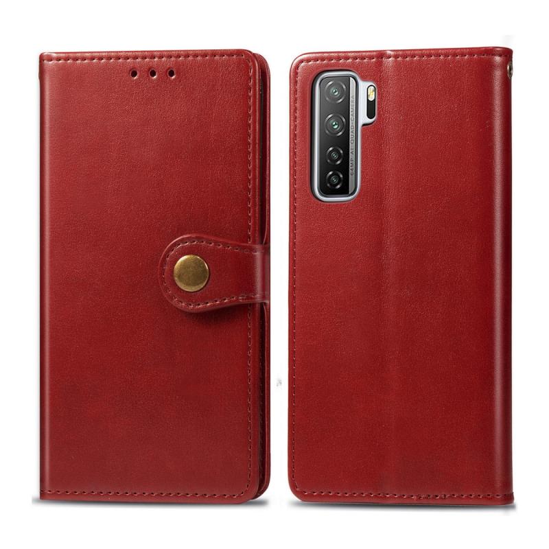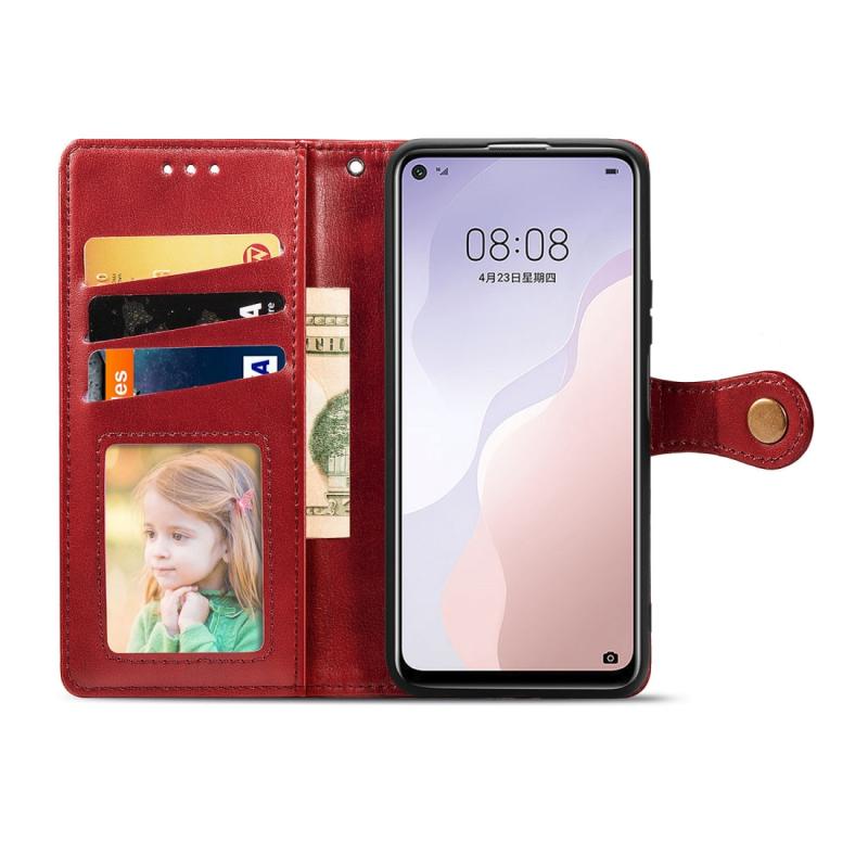 Θήκη τηλεφώνου Huawei Nova 7 SE/P40 Lite 5G με ρετρό, μονόχρωμο δερμάτινο κούμπωμα, λουρί, κορνίζα φωτογραφιών, θήκη καρτών, πορτοφόλι και λειτουργία βάσης (Κόκκινο)