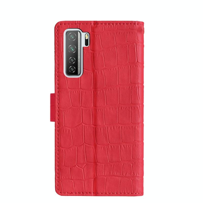 Θήκη Huawei nova 7 SE/P40 Lite 5G με υφή δέρματος κροκόδειλου, μαγνητικό κούμπωμα, οριζόντια αναδιπλούμενη από δερματίνη PU με βάση στήριξης & θήκες καρτών & πορτοφόλι (Κόκκινο)