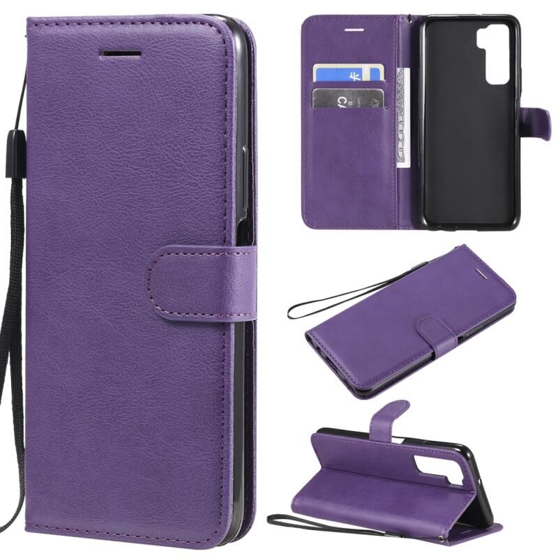 Για Huawei nova 7 SE / P40 Lite 5G Αμιγές χρώμα Οριζόντια Flip Προστατευτική δερμάτινη θήκη με υποδοχές για κάρτες και πορτοφόλι και κορδόνι (Μωβ)