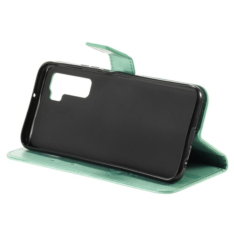 Για Huawei Nova 7 SE Tree & Cat ανάγλυφο μοτίβο οριζόντια Flip δερμάτινη θήκη με κάτοχο & υποδοχές για κάρτες & πορτοφόλι & κορδόνι (πράσινο)