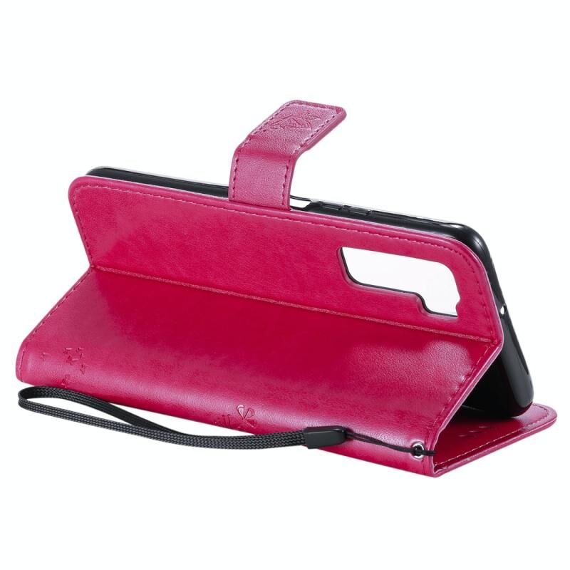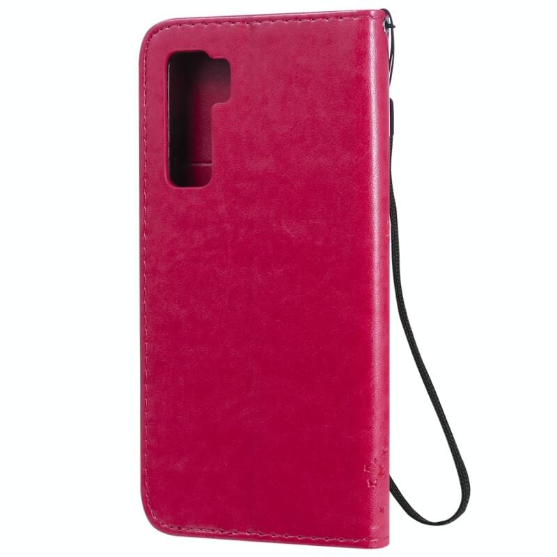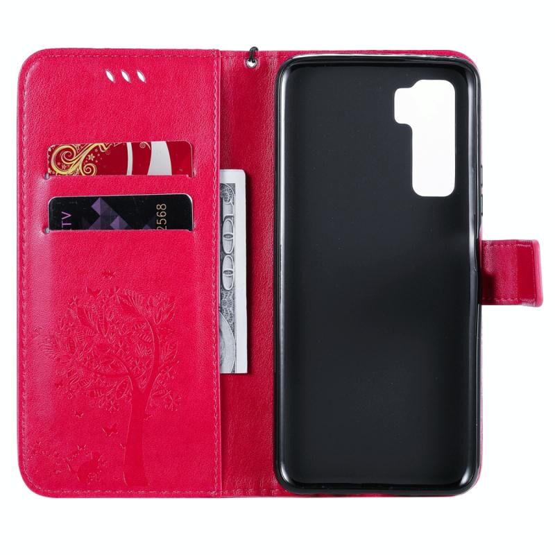 Για Huawei Nova 7 SE Tree & Cat ανάγλυφο μοτίβο οριζόντια Flip δερμάτινη θήκη με κάτοχο & υποδοχές για κάρτες & πορτοφόλι & κορδόνι (Rose Red)