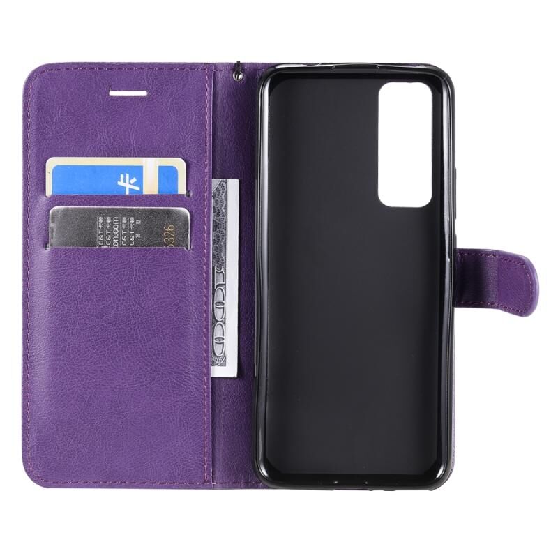 Για Huawei nova 7 Αμιγές χρώμα οριζόντια Flip προστατευτική δερμάτινη θήκη με κάτοχο & υποδοχές καρτών & πορτοφόλι & κορδόνι (μωβ)