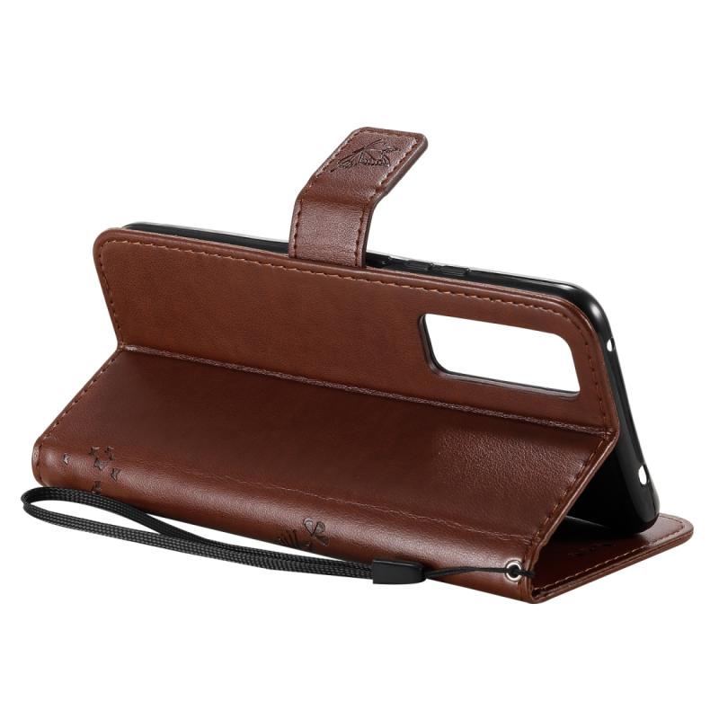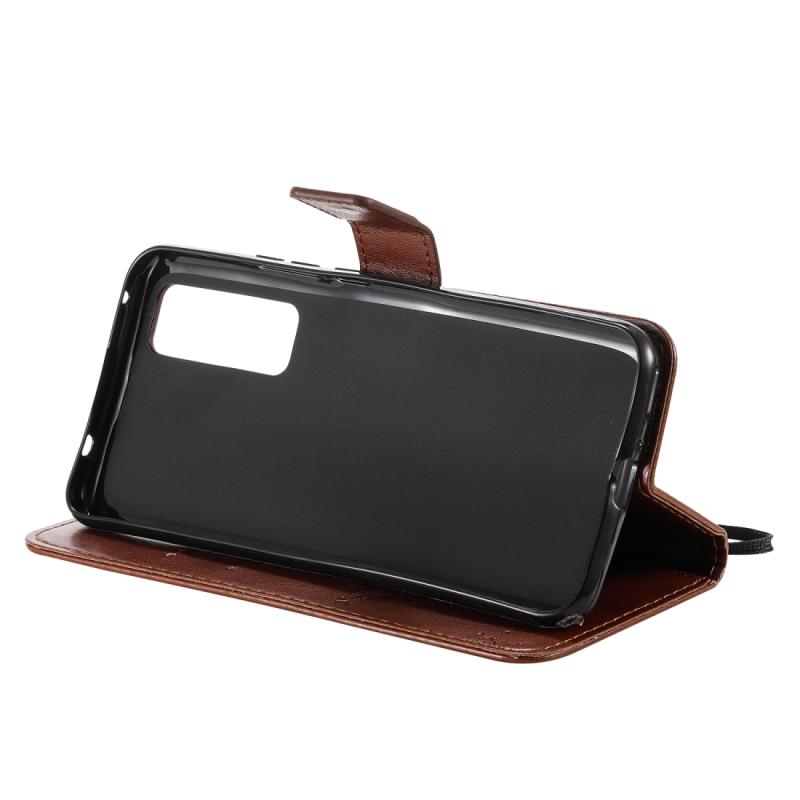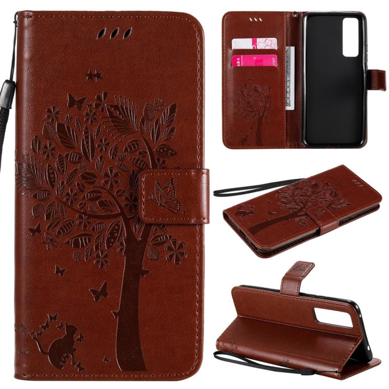 Θήκη Huawei Nova 7, Δερμάτινη, Οριζόντια, με ανάγλυφο σχέδιο Δέντρου & Γάτας, με βάση στήριξης, θήκες για κάρτες, πορτοφόλι & λουρί (Καφέ)