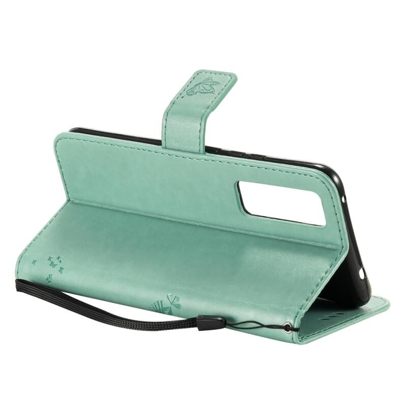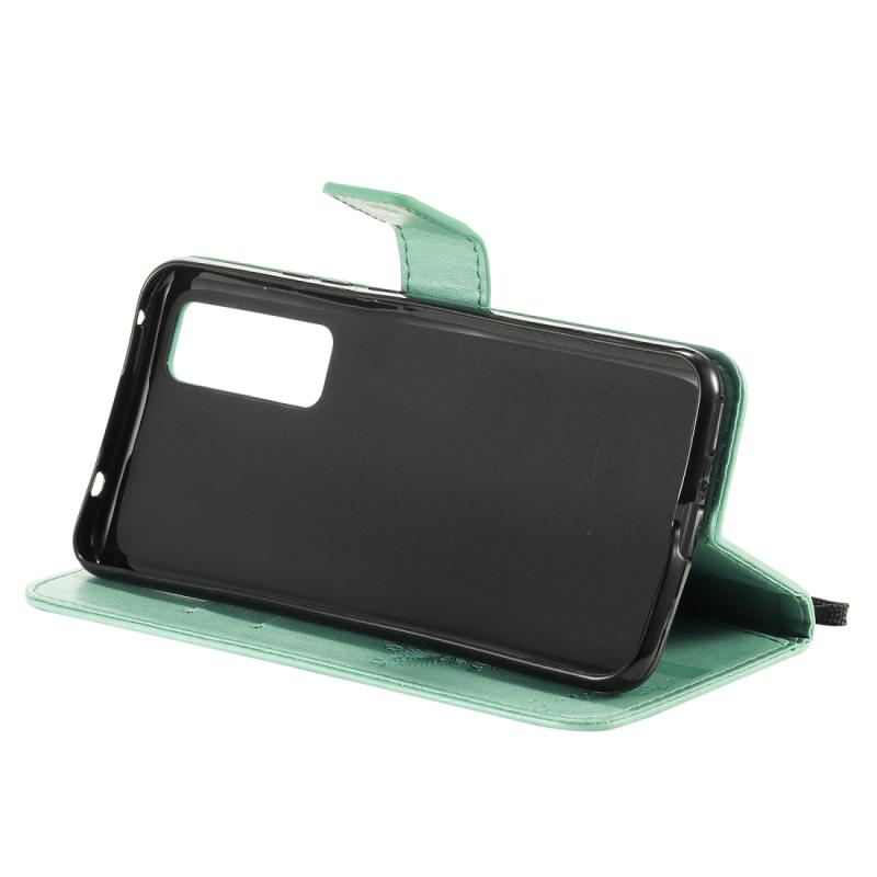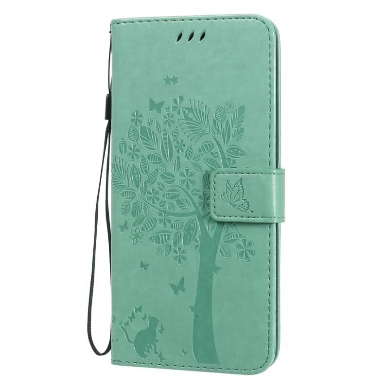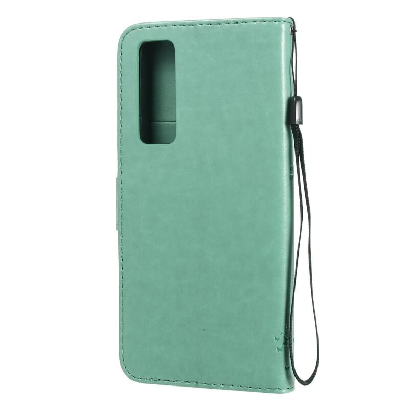 Θήκη Huawei Nova 7, Δερμάτινη, Οριζόντια, με ανάγλυφο σχέδιο Δέντρου & Γάτας, με βάση στήριξης, θήκες για κάρτες, πορτοφόλι & λουρί (πράσινο)