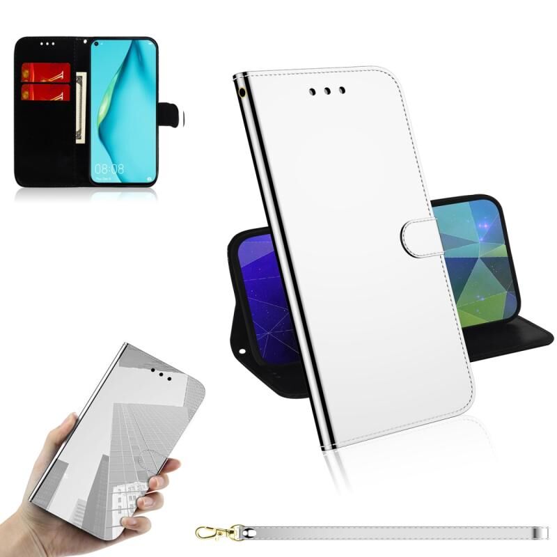 Για Huawei nova 7i Απομιμητική επιφάνεια καθρέφτη Οριζόντια Flip δερμάτινη θήκη με θήκη & υποδοχές για κάρτες & πορτοφόλι & κορδόνι (ασημί)