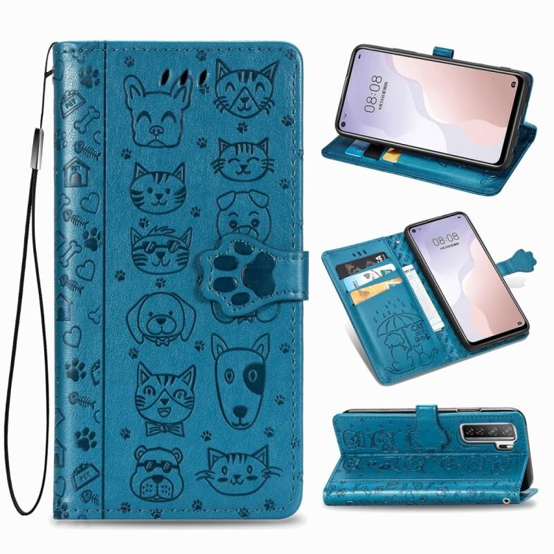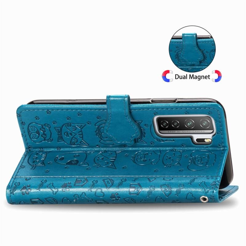 Για Huawei Nova 7SE/P40 Lite 5G Χαριτωμένη Θήκη Δέρματος Οριζόντιας Αναδίπλωσης με ανάγλυφα σχέδια Γάτας και Σκύλου με Στήριγμα / Θήκη Κάρτας / Πορτοφόλι / Λουρί (Κίτρινο)