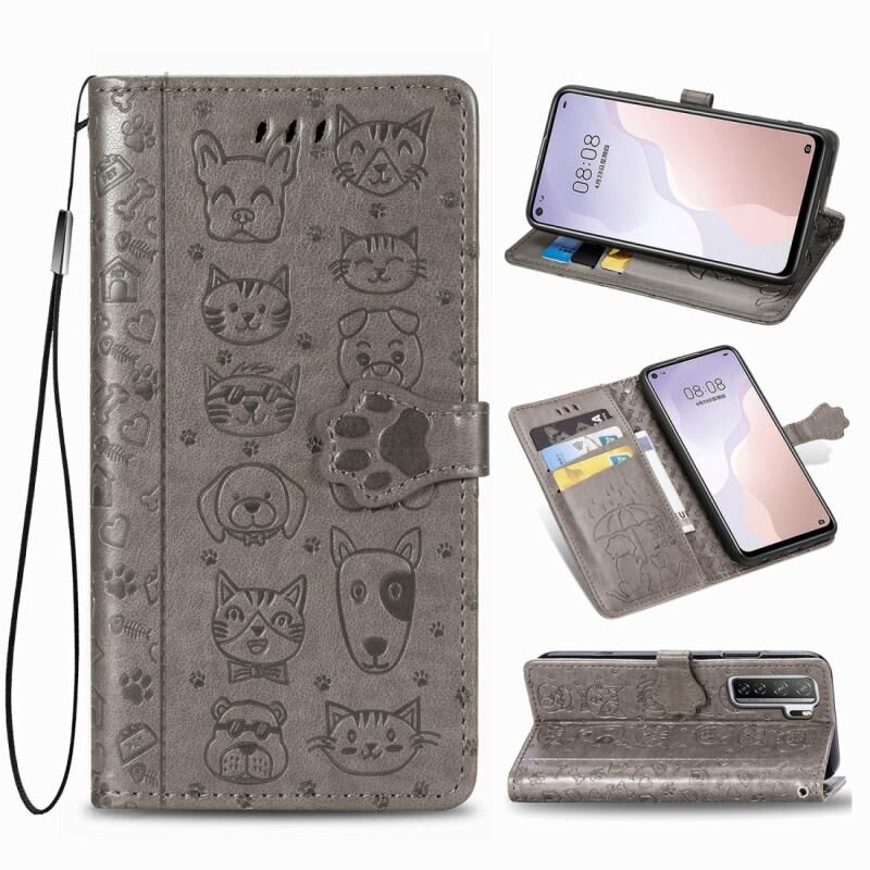 Για Huawei Nova 7SE/P40 Lite 5G Χαριτωμένη Θήκη Δέρματος Οριζόντιας Αναδίπλωσης με ανάγλυφα σχέδια Γάτας και Σκύλου με Στήριγμα / Θήκη Κάρτας / Πορτοφόλι / Λουρί (Κίτρινο)