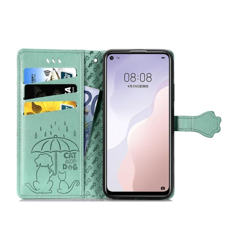 Για Huawei Nova 7SE/P40 Lite 5G Χαριτωμένη Θήκη Δέρματος Οριζόντιας Αναδίπλωσης με ανάγλυφα σχέδια Γάτας και Σκύλου με Στήριγμα / Θήκη Κάρτας / Πορτοφόλι / Λουρί (Πράσινο)
